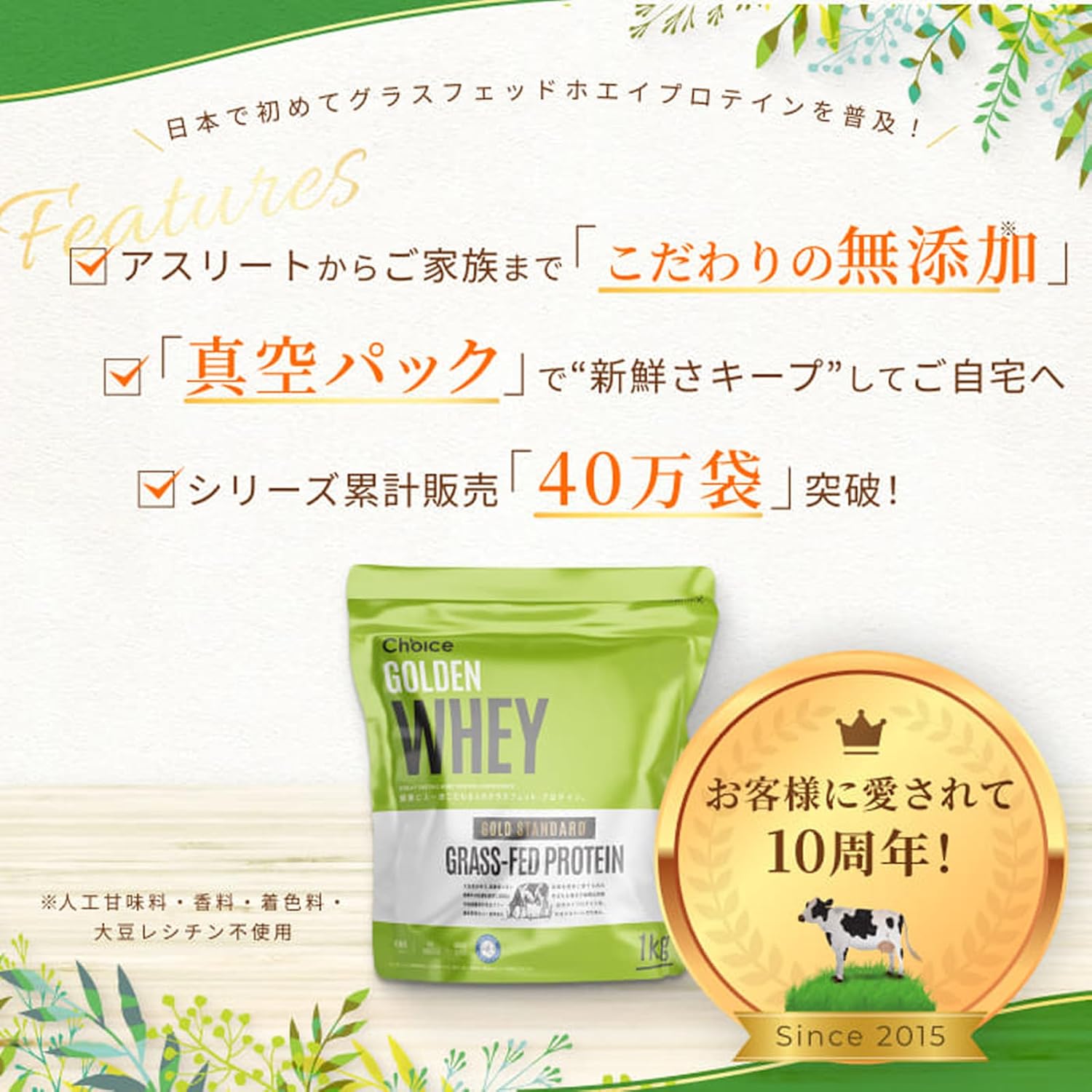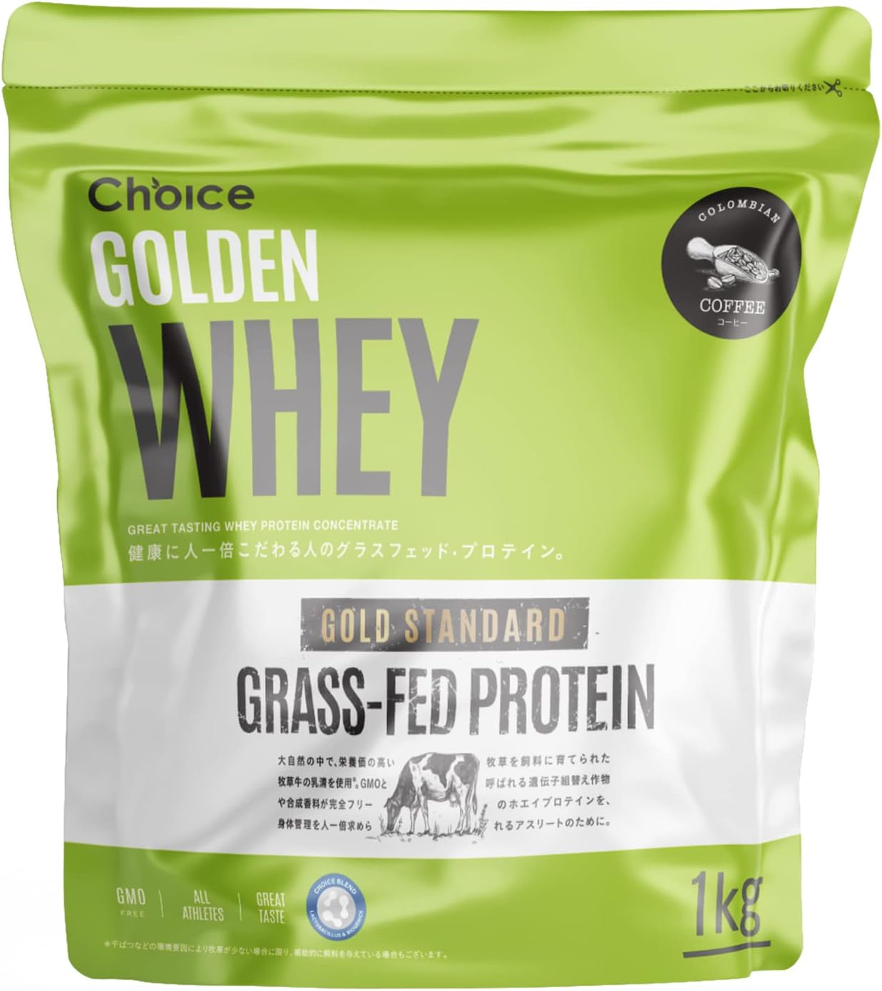 Choice ゴールデンホエイ グラスフェッド ホエイプロテイン プレーン味 1kg プロテイン 人工甘味料不使用 国内製造 乳酸菌ブレンド GMOフリー