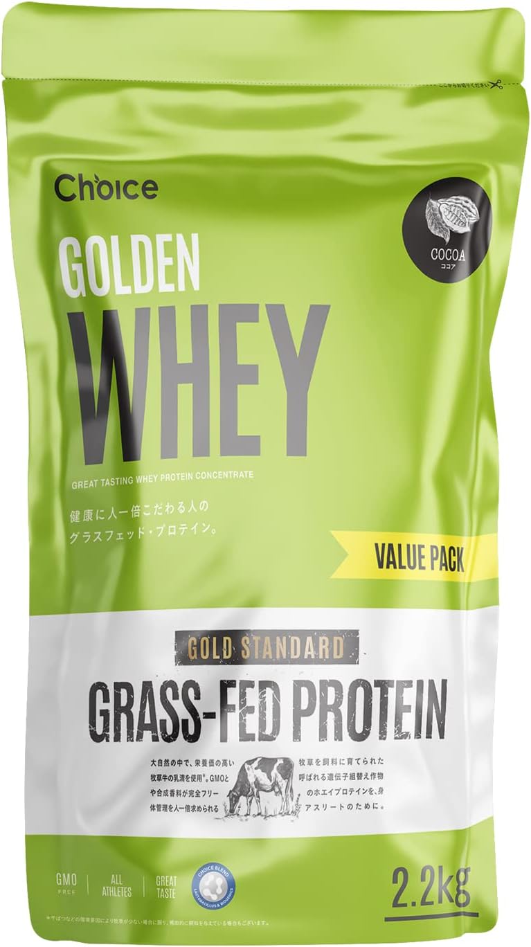 - •【健康を心がけるすべての人へ】成分と品質にこだわった「ゴールデンホエイ」。肉体管理を行う本格アスリートやスポーツマンから、健康維持を心がけるすべての方におすすめのプロテインです。チョイスのプロテインは、飲みやすく続けやすいため初めての方や女性にもオススメです。