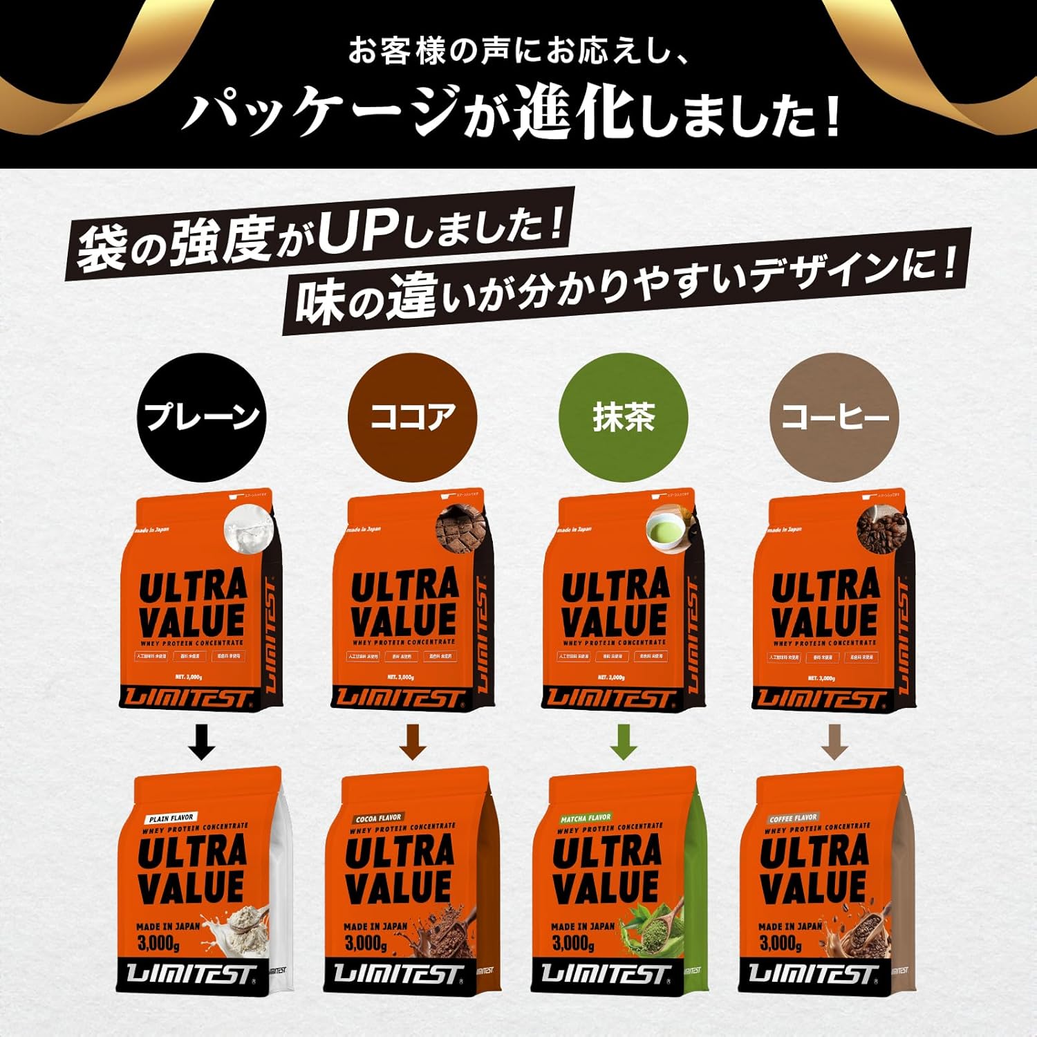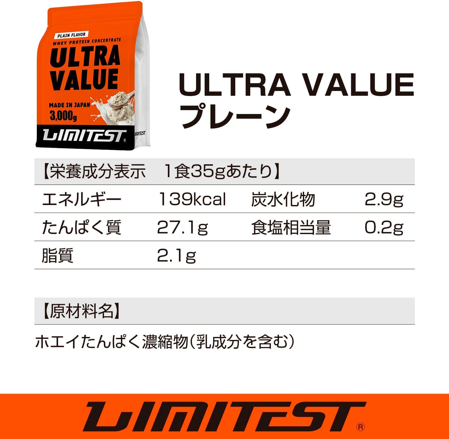 リミテスト ホエイ プロテイン 工場直販 無添加 国産 人工甘味料不使用 ULTRA VALUE ウルトラバリュー ホエイプロテイン 3kg プレーン ナチュラル