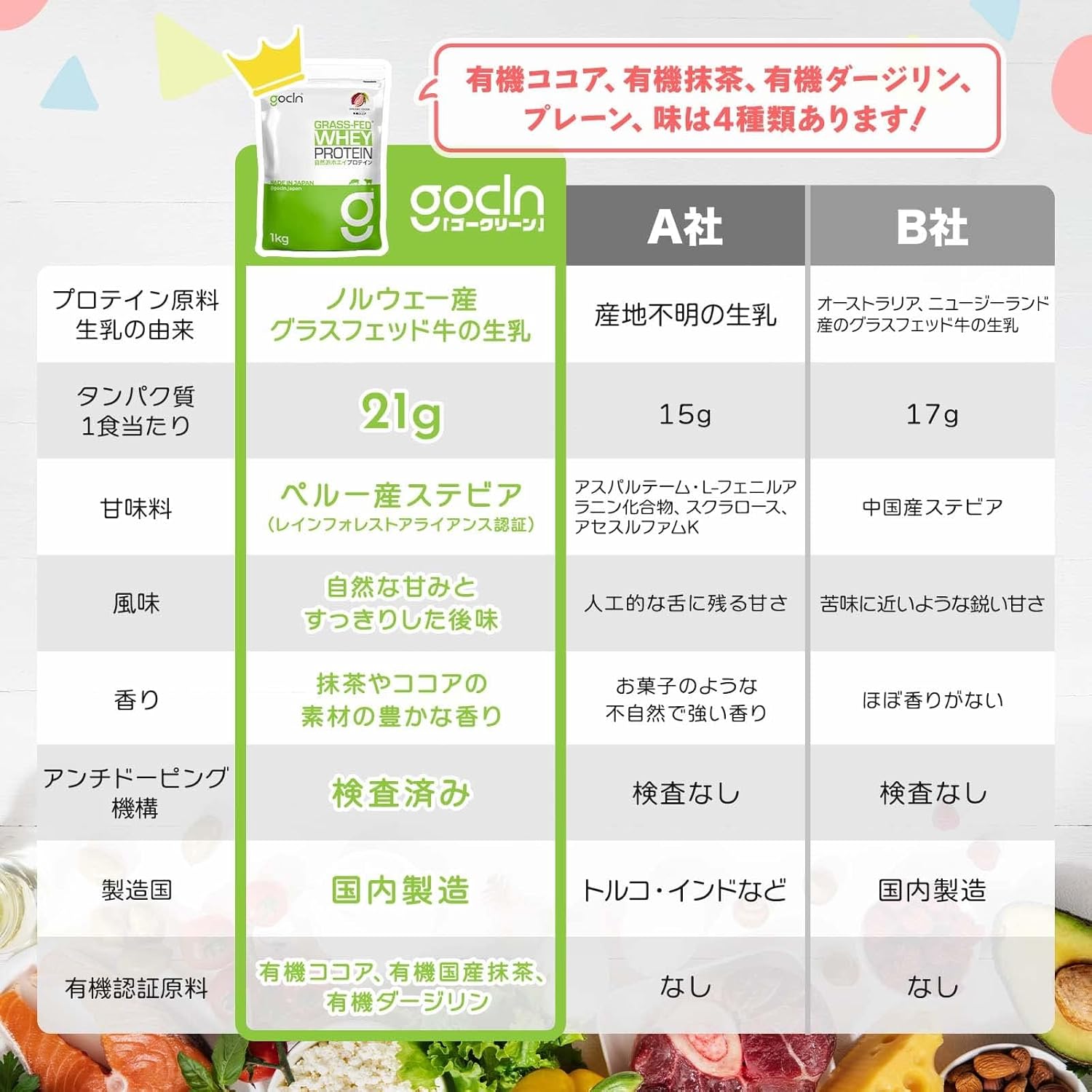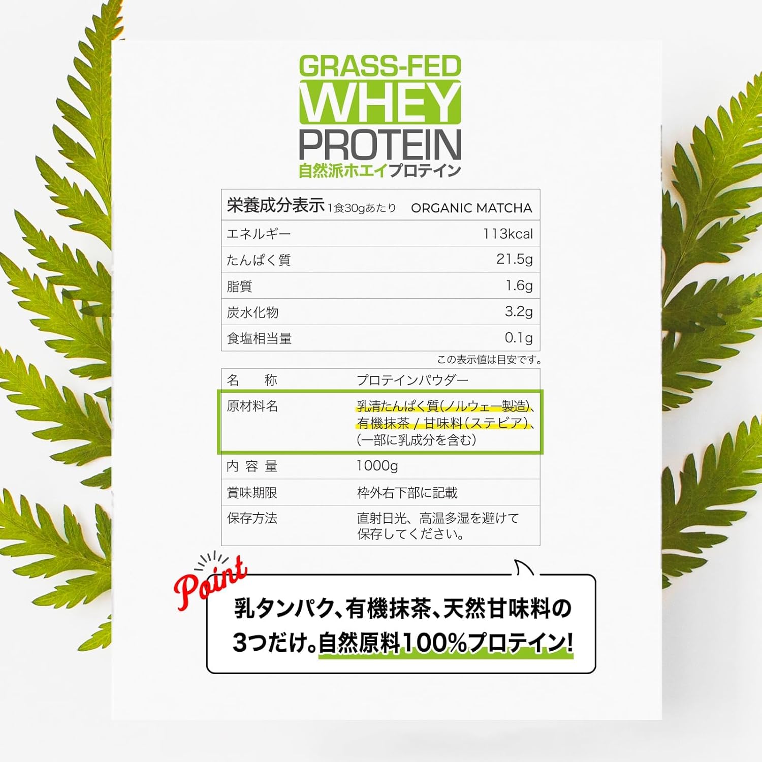 GoCLN (ゴークリーン) グラスフェッド ホエイプロテイン (オーガニック抹茶使用)1kg 人工甘味料不使用 フレーバー 国内製造 ぷろていん ホエイプロテイン WPC Whey Protein Grass-fed Made in Japan