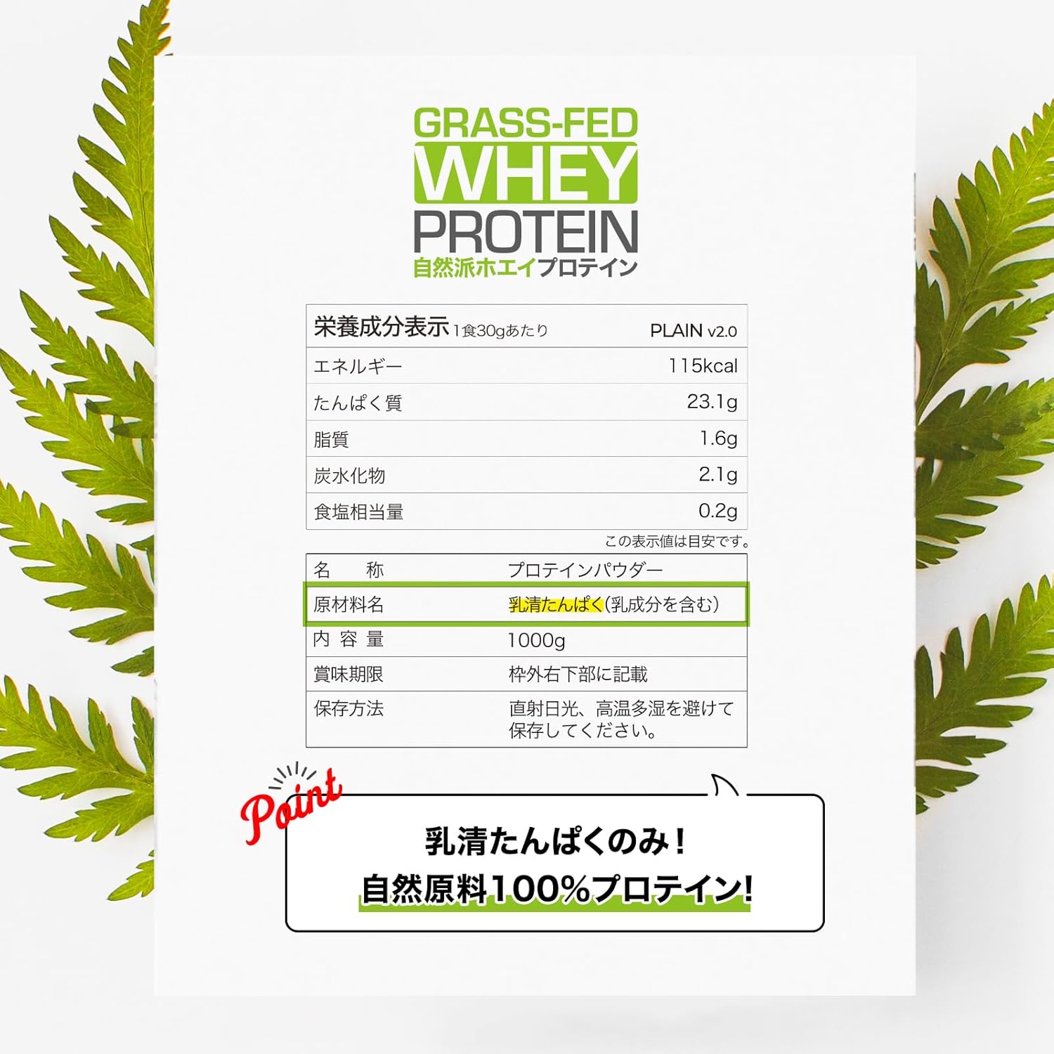 - •【地球の未来を考えるすべての人へ】環境保全と品質に妥協しない グラスフェッド ホエイプロテイン 。徹底的な体調管理を行う本格アスリートから、健康維持を心がけるすべての方におすすめのプロテインです。余計なものが入っていないので、成長期のジュニア世代や栄養不足に陥りがちな多忙なママにもオススメ。地球の未来のために、正しくありたいと願うすべての方にオススメします。