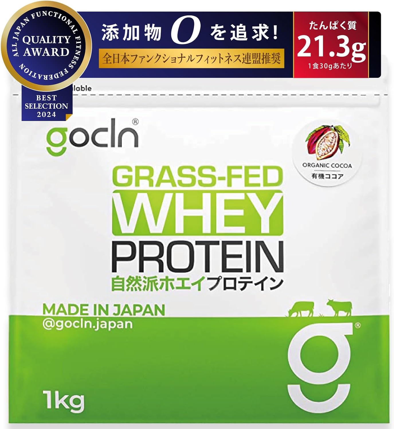 GoCLN (ゴークリーン) グラスフェッド ホエイプロテイン (プレーン) 1kg 人工甘味料不使用 国内製造 ぷろていん ホエイプロテイン WPC Whey Protein Grass-fed Made in Japan