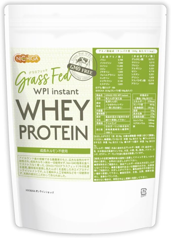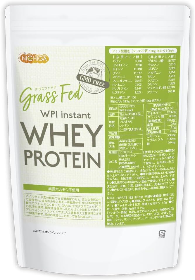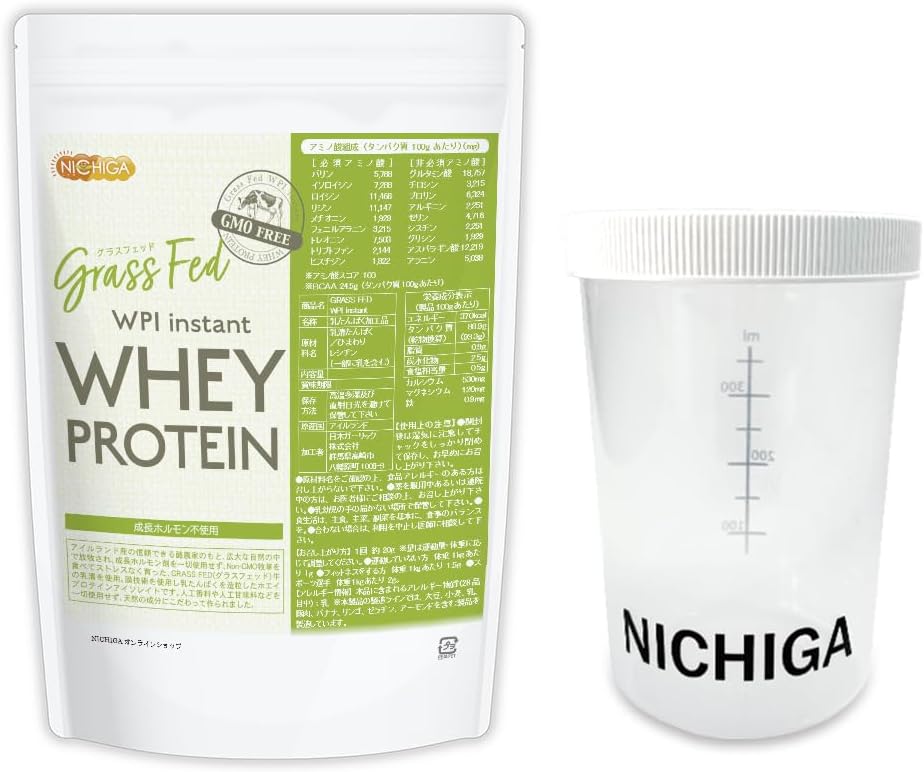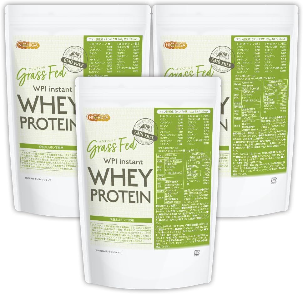 NICHIGA(ニチガ)〈シェイカー セット〉 GRASS FED WPI instant ホエイプロテイン 1kg×3袋 〔rBGH and rBST牛成長ホルモン不使用〕 GMO-Free グラスフェッド TK2