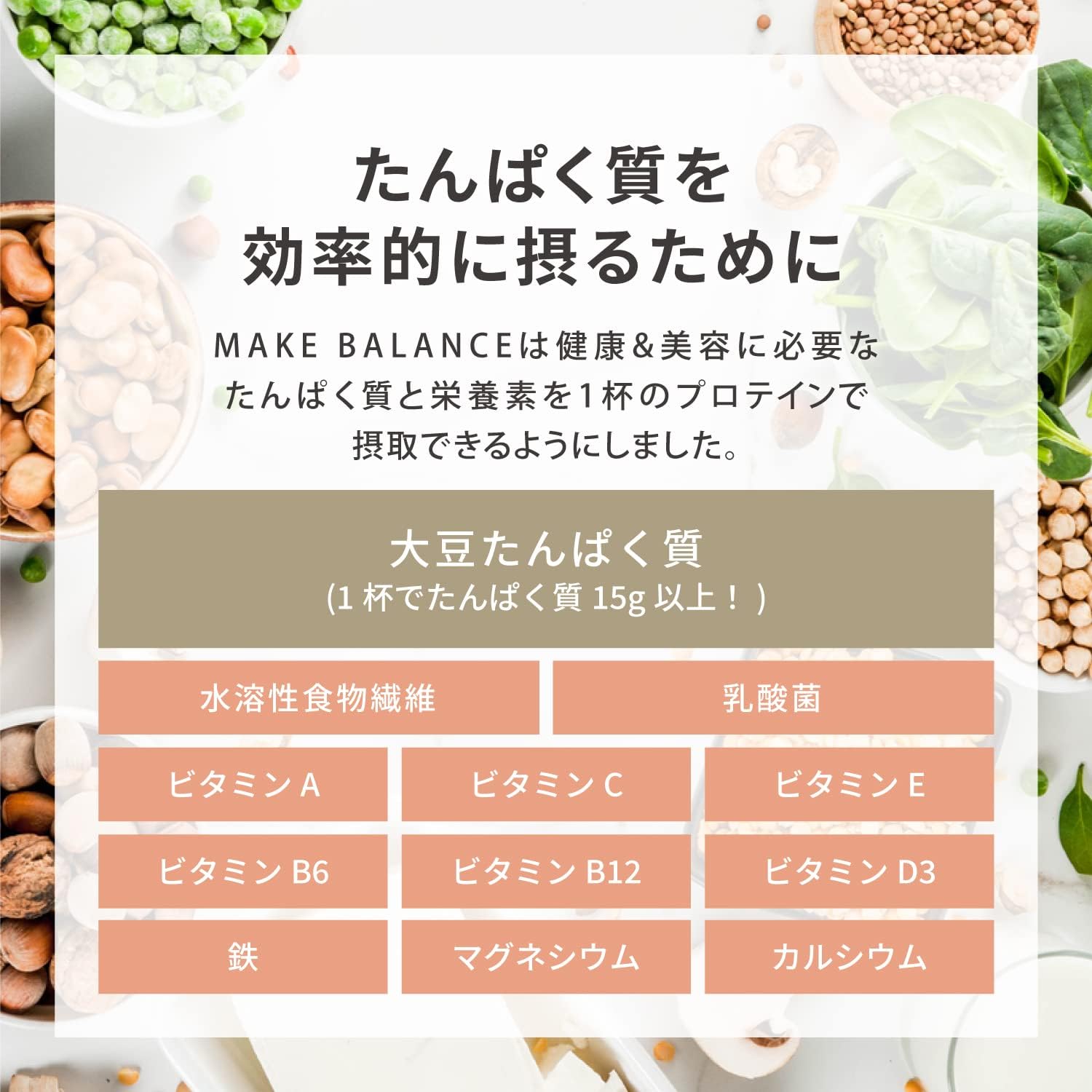 FIXIT プロテイン ソイプロテイン MAKE BALANCE 1kg 【プレーン】たんぱく質含有量85%以上 FIXIT プロテイン ソイプロテイン MAKE BALANCE 1kg 【ココア】たんぱく質含有量80%以上 FIXIT プロテイン ソイプロテイン MAKE BALANCE 1kg 【抹茶】たんぱく質含有量80%以上 カスタマーレビュー 5つ星のうち3.9 689 5つ星のうち3.9 1,306 5つ星のうち3.8 327 価格 ¥3,680¥3,680 ¥3,980¥3,980 — no data エネルギー 73.4kcal 73.2kcal 75.6kcal フレーバー プレーン ココア 抹茶 フレーバーの特徴 プレーンタイプで様々な飲料や食べ物に混ぜて使用できるソイプロテインです。甘味料が苦手な方にもオススメです。 適度な甘さのココアフレーバー。甘いのがお好みの方は牛乳や豆乳で飲むのがオススメ。 甘さ控えめの抹茶フレーバです。大豆の風味を生かしつつ、ほんのり抹茶味をプラスしました。牛乳や豆乳でシェイクすると、抹茶ラテの味をお楽しみいただけます。