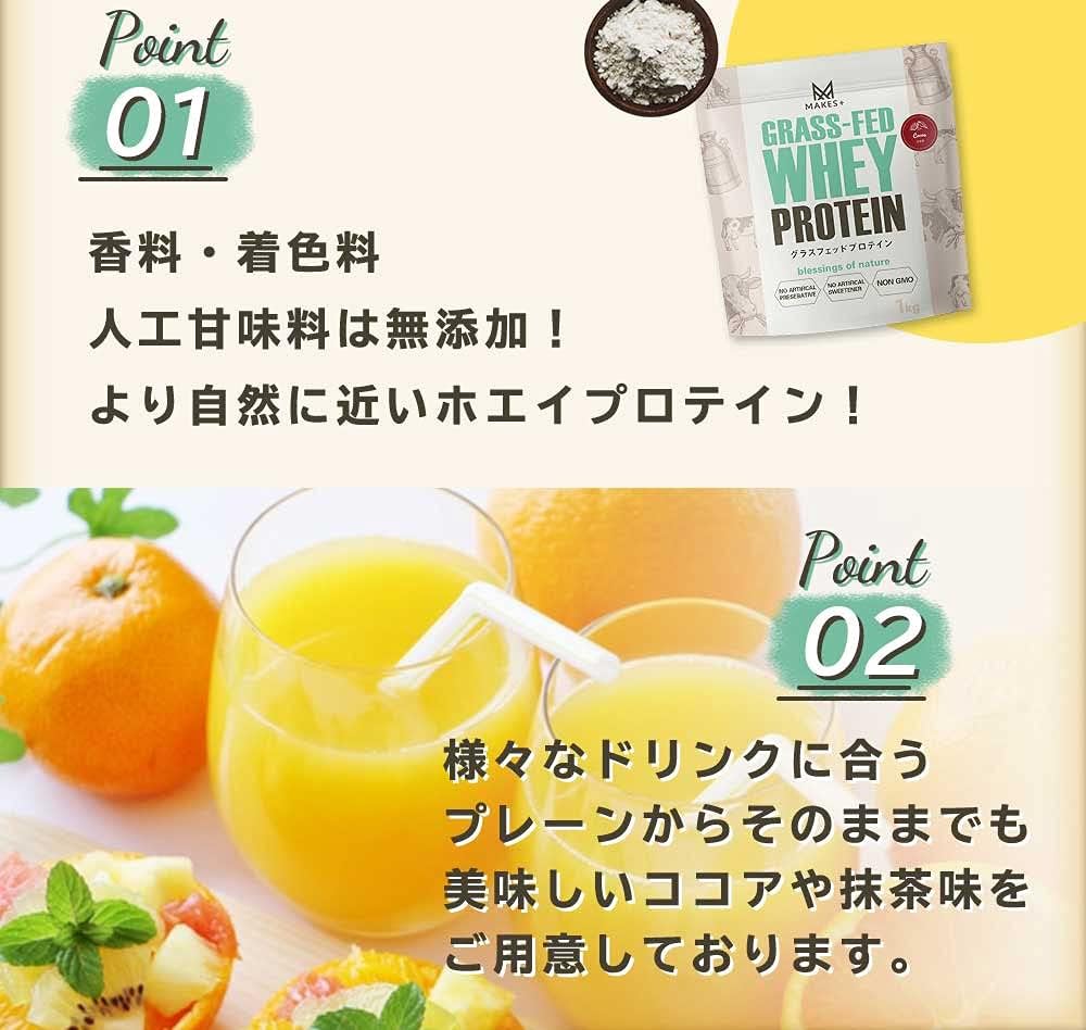 MAKES+ グラスフェッド ホエイプロテイン 1kg WPC 人口甘味料・香料不使用 国内製造 (プレーン)