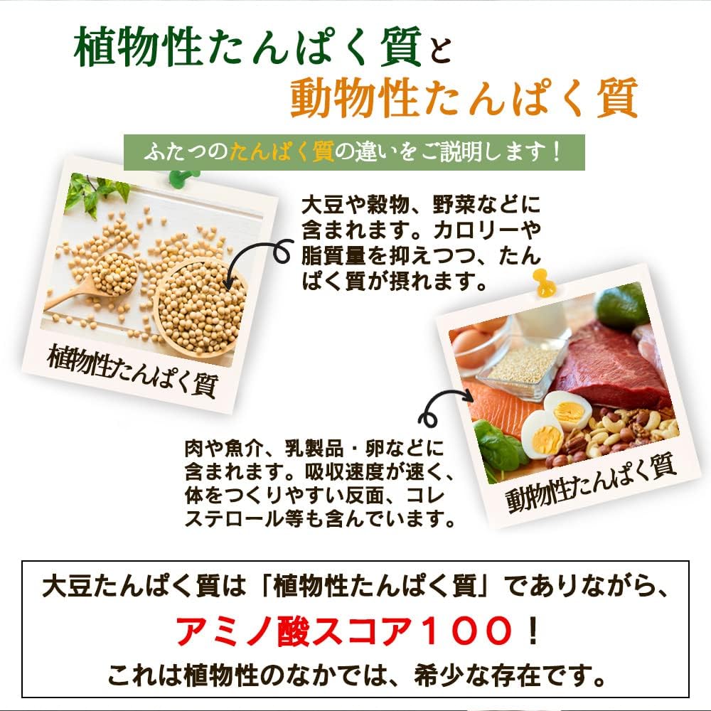 - •✅【こだわりポイント】①完全無添加のナチュラルソイプロテイン:1食分で大豆イソフラボンが50mg摂取可。遺伝子組み換え大豆も使用していないため、安心・安全にお召し上がりいただけます。②最強な栄養バランス:体内では作り出すことができない9種類のアミノ酸が配合!良質なたんぱく質である証拠です。③溶けやす胃から飲みやすい:インスタント加工をして、ダマになりにくいように仕上げました。④美容成分もたっぷり:動物性たんぱく質に負けない栄養素がギュギュッと!イソフラボンやサポニンも一緒に摂取できる!