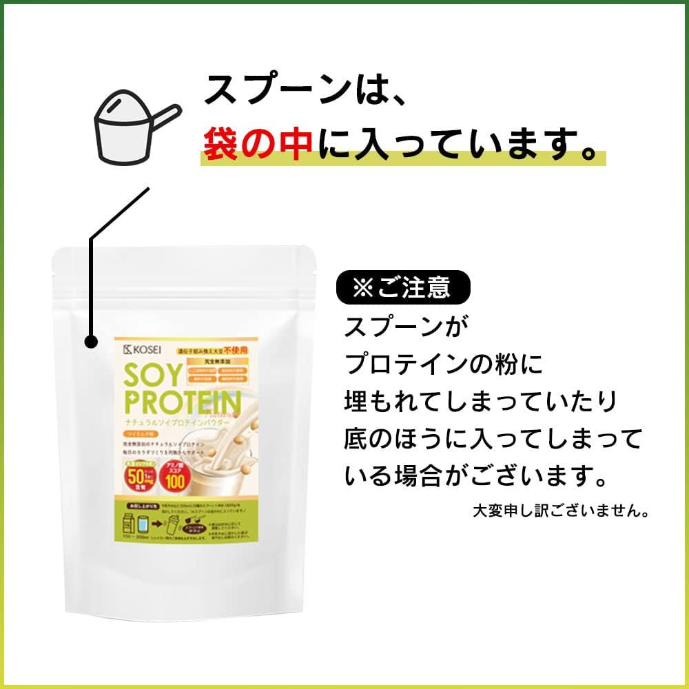 KOSEI 光生 国内製造 ナチュラル ソイプロテイン IP管理大豆使用 〈分別生産流通管理〉 1kg 1袋 スプーン付 無添加 保存料不使用 非遺伝子組み換え大豆 人工甘味料不使用 中国産不使用