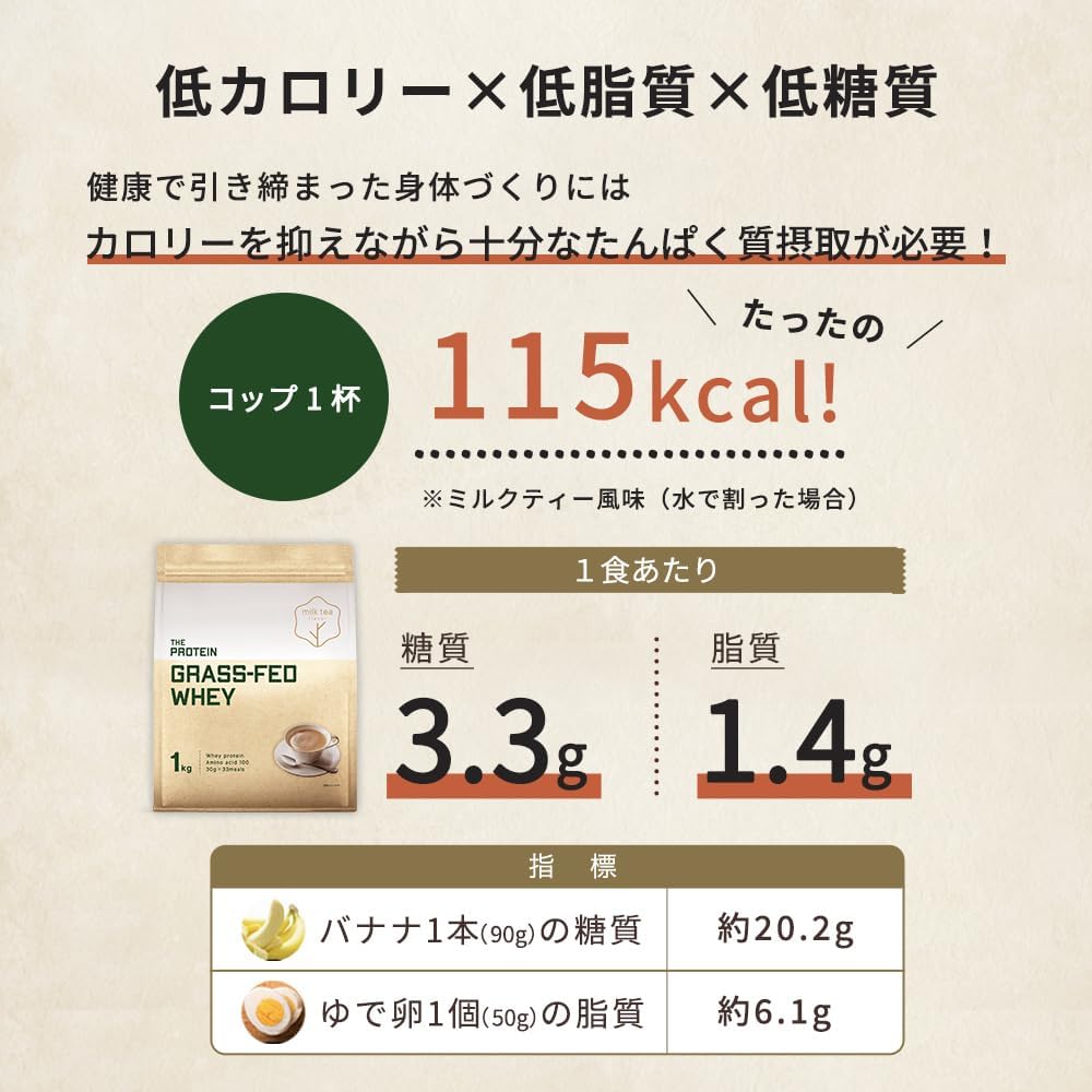 ザプロ グラスフェッド プロテイン 1Kg ミルクティー 風味 人工甘味料不使用 無添加 武内製薬 THE PROTEIN