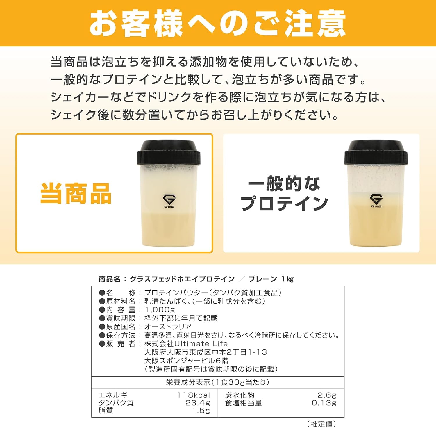 グロング グラスフェッドプロテイン ホエイプロテイン プレーン 1kg 人工甘味料不使用 甘味料不使用 グラスフェッド プロテイン ホエイ GronG