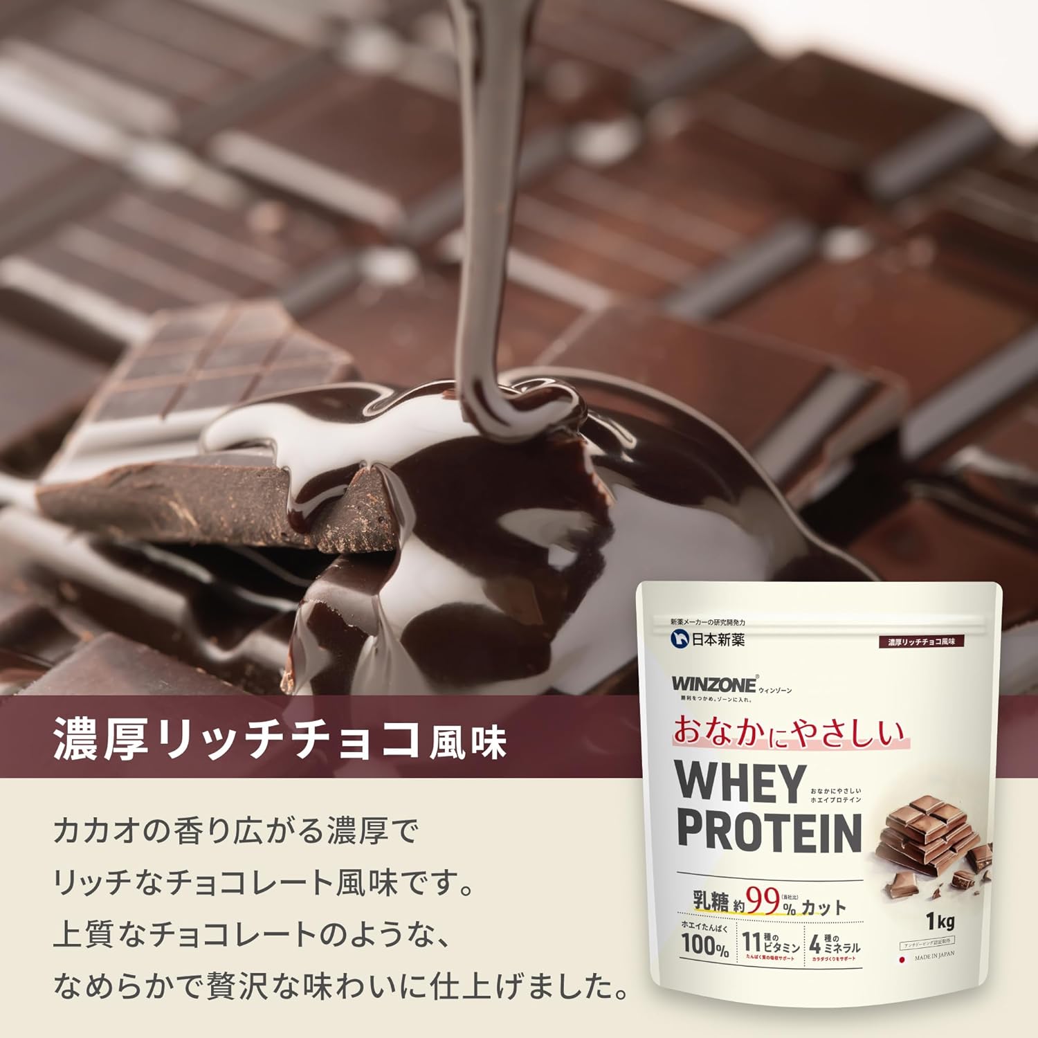 WINZONE おなかにやさしいホエイプロテイン1㎏濃厚チョコ風味 乳糖約99%カット