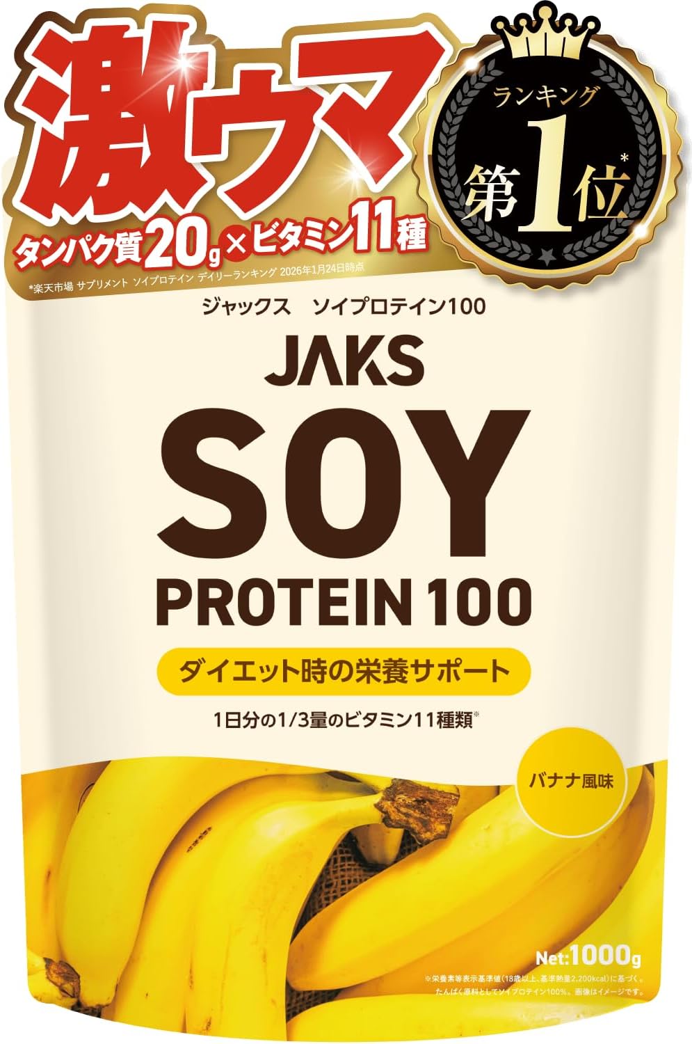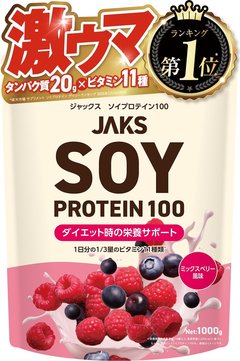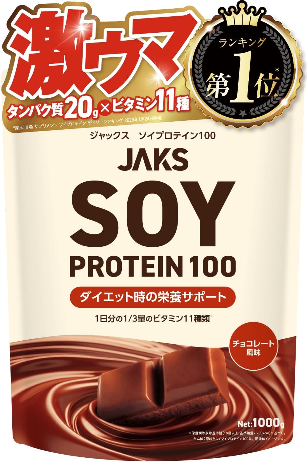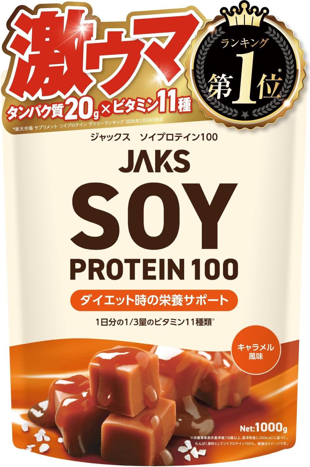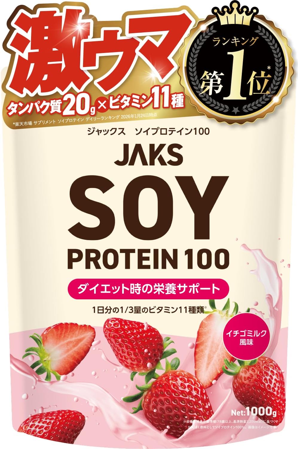 【溶けやすい】 ジャックス JAKS ソイプロテイン 1kg (国産大豆たんぱく原料使用) おいしい 国内製造 ダイエット 1食分のビタミン11種類 オールインワン配合 SOY 高たんぱく質 粉末 大豆たんぱく ダマになりにくい (1kg, 抹茶ラテ)