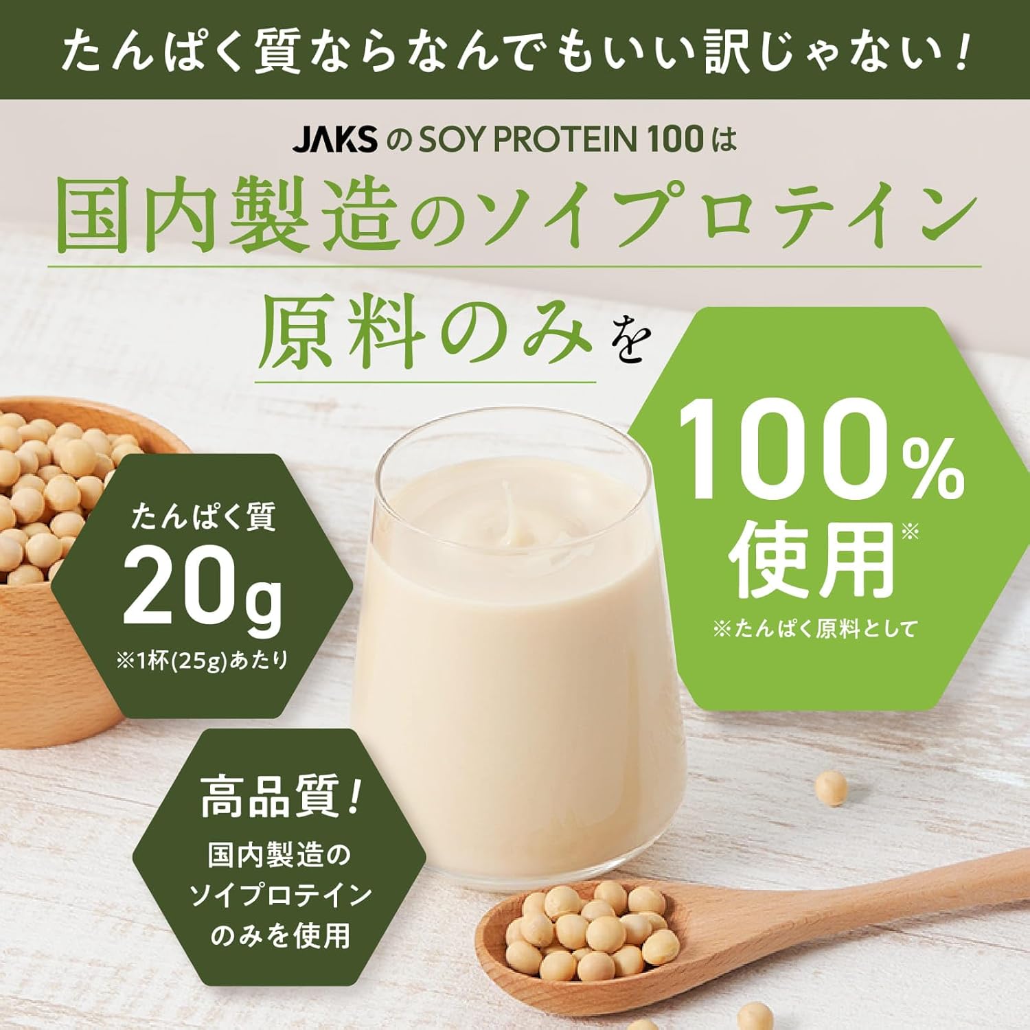 - •🌿【徹底的な品質管理へのこだわり】 毎日お飲みいただくものだからこそ、みなさまに不安なくお召し上がりいただけるように、JAKSソイプロテインは、国内工場で製造しております。成分の力をしっかり引き出すため、製造工程から管理体制まで徹底し、厳しい基準をクリアした安全性と品質にこだわった商品をお届けします。