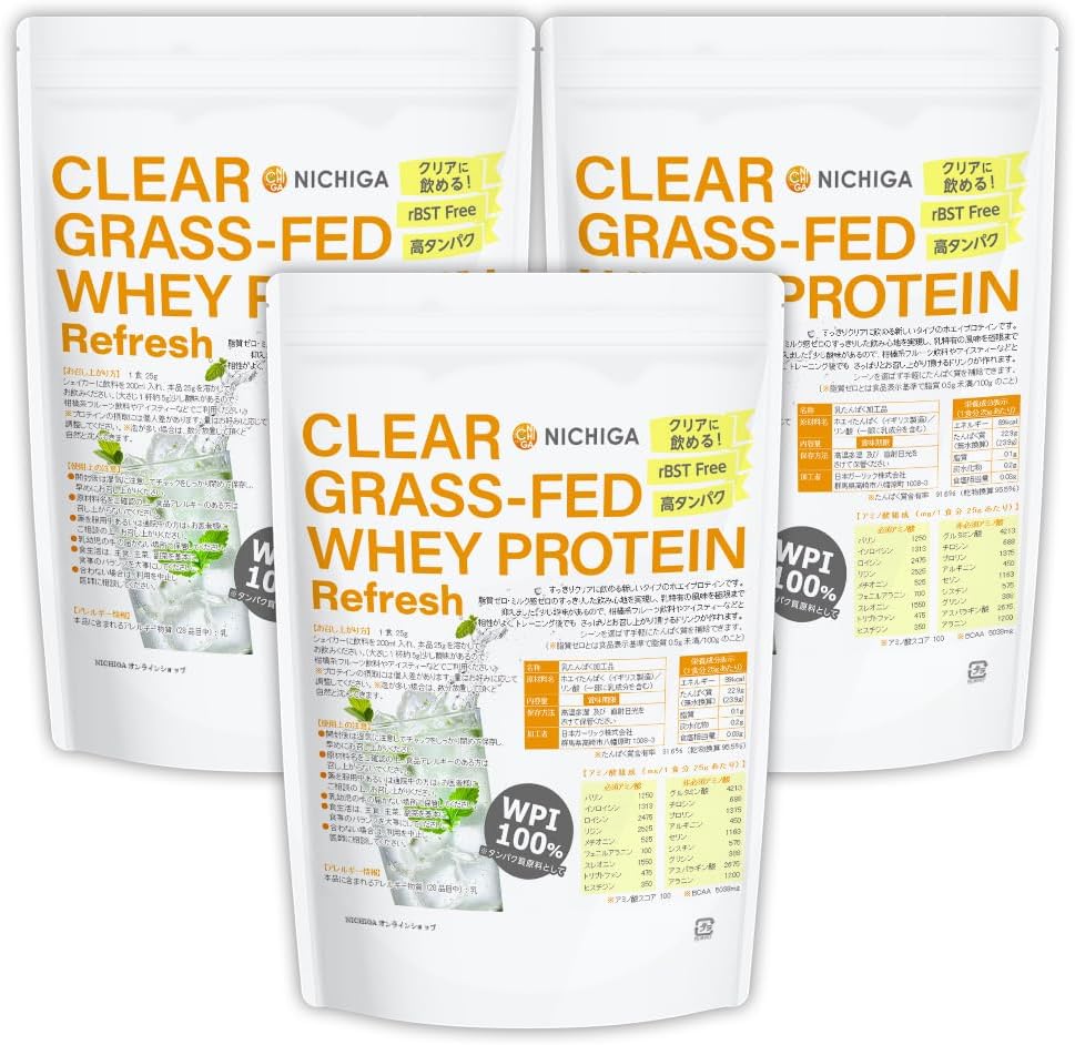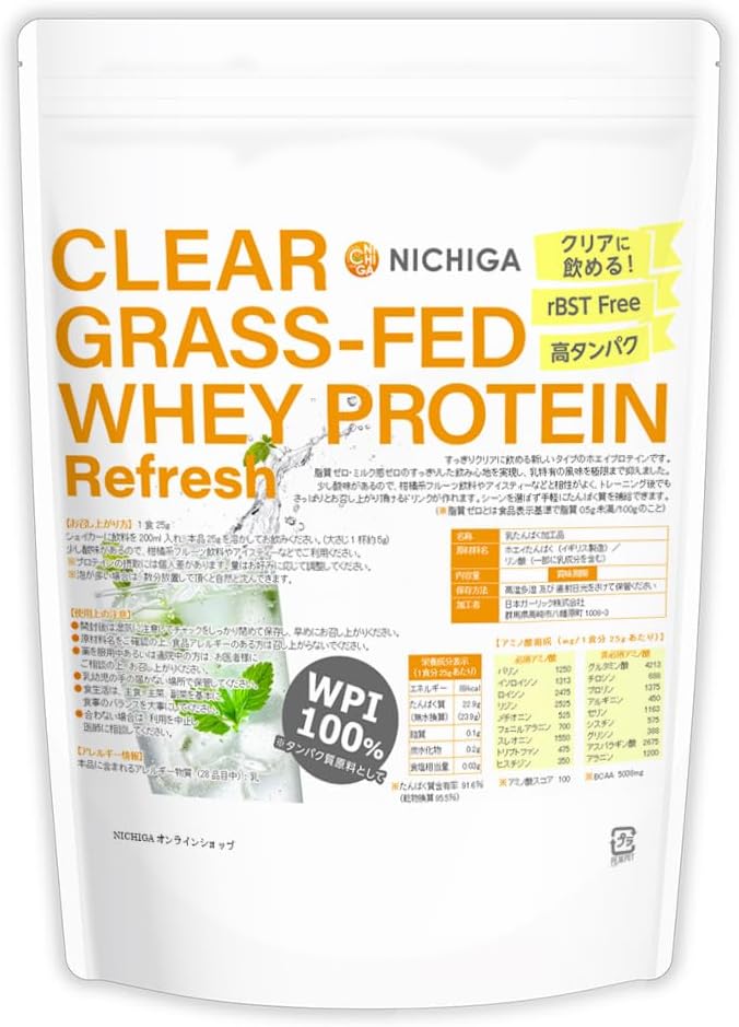 NICHIGA(ニチガ) クリア グラスフェッド ホエイプロテイン [Refresh] WPI 1kg CLEAR GRASS-FED WHEY 高タンパク 脂質ゼロ 筋トレ 飲みやすい TK0