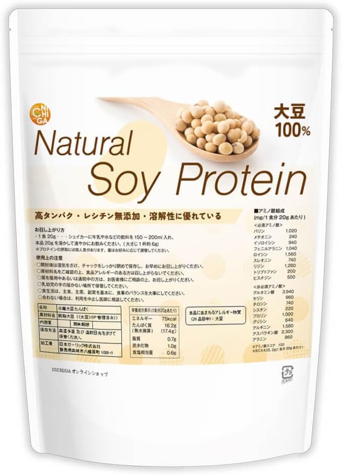 NICHIGA(ニチガ) Natural Soy Protein 1kg レシチン無添加 大豆100% 高タンパク ソイプロテイン 大豆プロテイン 植物性プロテイン 大豆 無添加 シンプルソイプロテイン TK0
