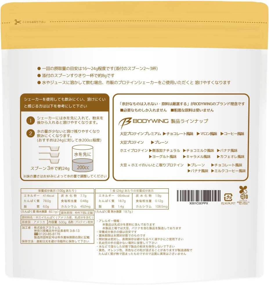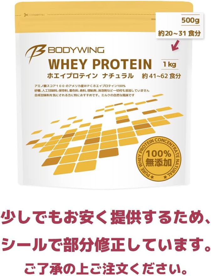 ボディウイング ホエイプロテイン (500g, 無添加ナチュラル)