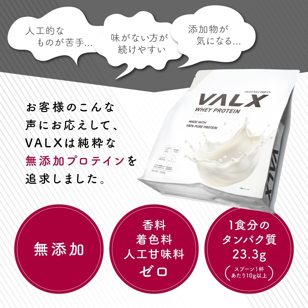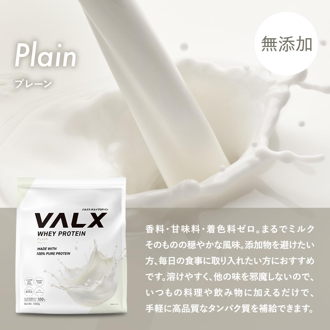 VALX バルクス 無添加 ホエイ プロテイン 1kg プレーン ホエイプロテイン WPC 人工甘味料不使用 保存料不使用 無添加 ダイエット 山本義徳 監修 国内製造