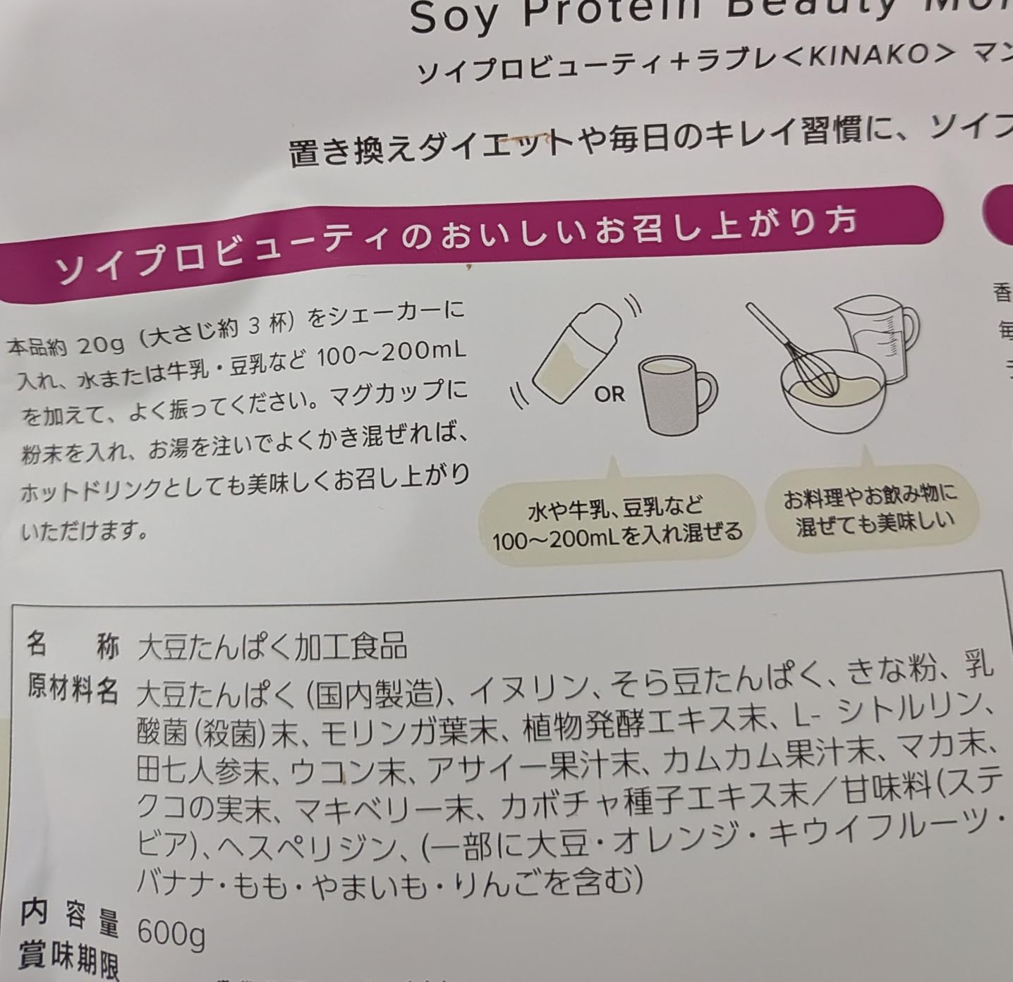 - •◇KINAKOxラブレ乳酸菌|植物由来の乳酸菌・ラブレを配合。国産大豆きなこの香ばしい風味と自然な甘さが、心安らぐひとときを提供します。良質な植物性タンパク質、食物繊維、大豆イソフラボンを豊富に含み、美容と健康をサポートします